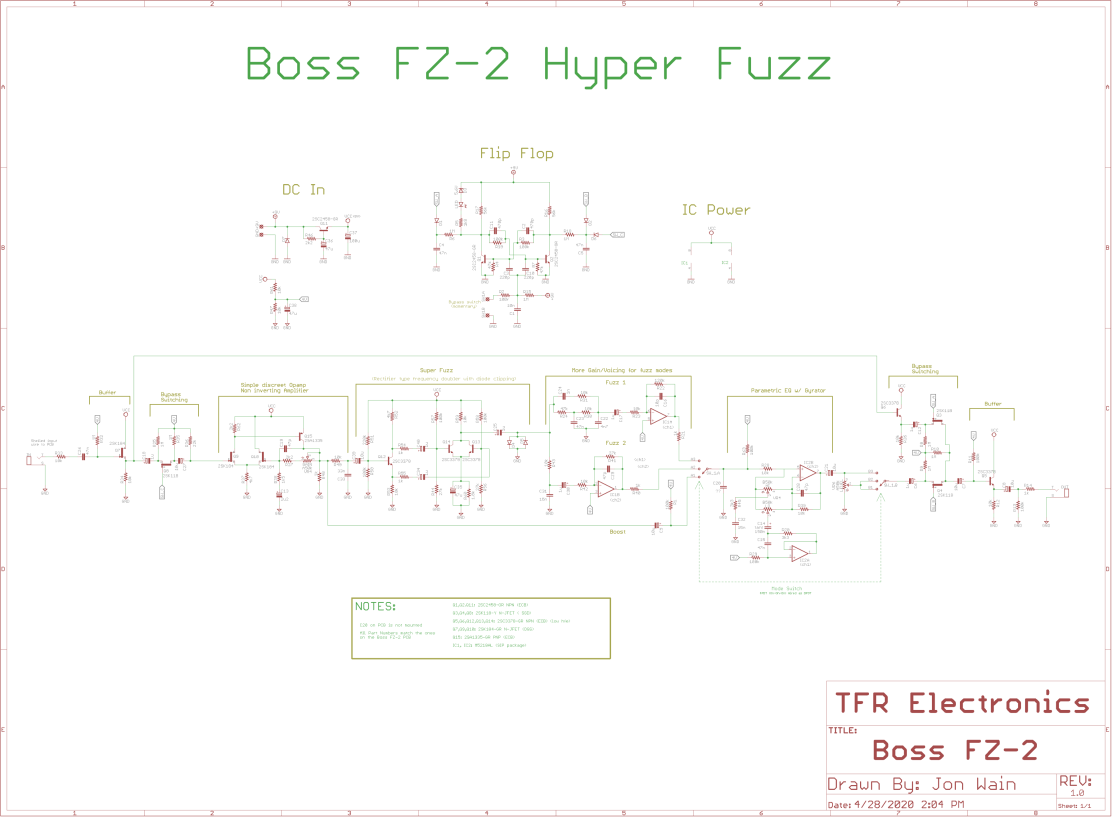 The Boss FZ-2 Hyper Fuzz has a pretty interesting and complex circuit compared with most popular fuzz pedals. While it seems to be mostly known as a heavy doom metal fuzz it’s actually a very versatile pedal owing to the active EQ, two fuzz modes, and clean boost mode.
