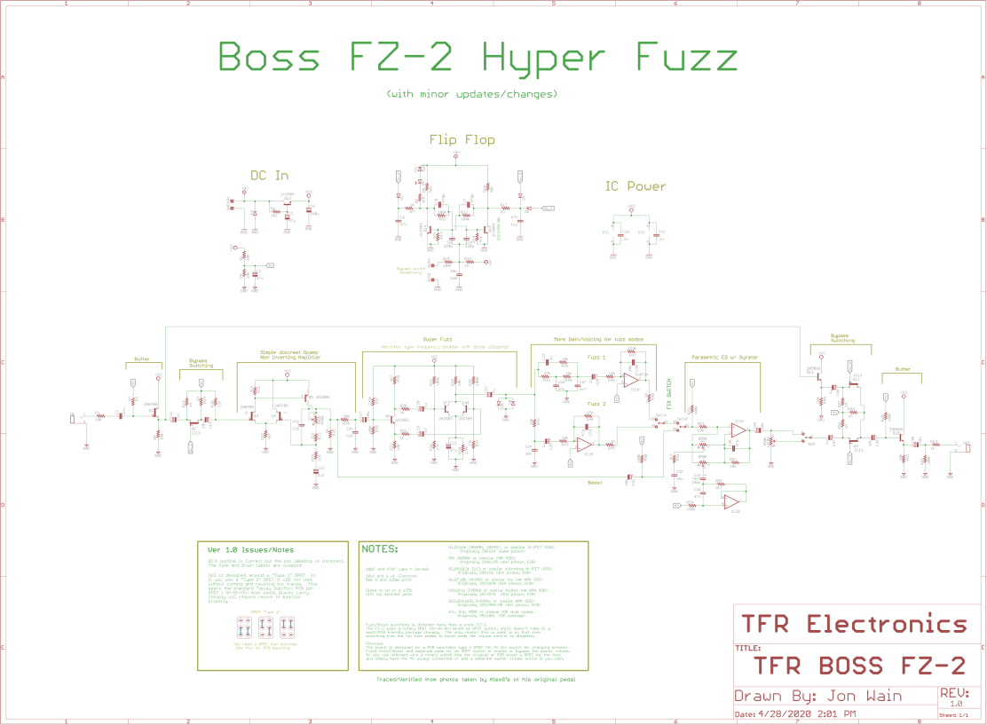 The Boss FZ-2 Hyper Fuzz has a pretty interesting and complex circuit compared with most popular fuzz pedals. While it seems to be mostly known as a heavy doom metal fuzz it’s actually a very versatile pedal owing to the active EQ, two fuzz modes, and clean boost mode.